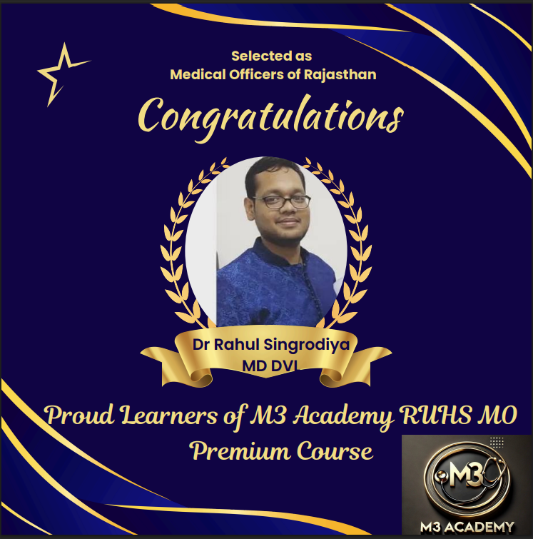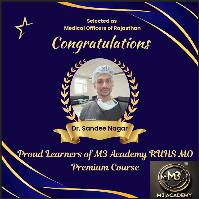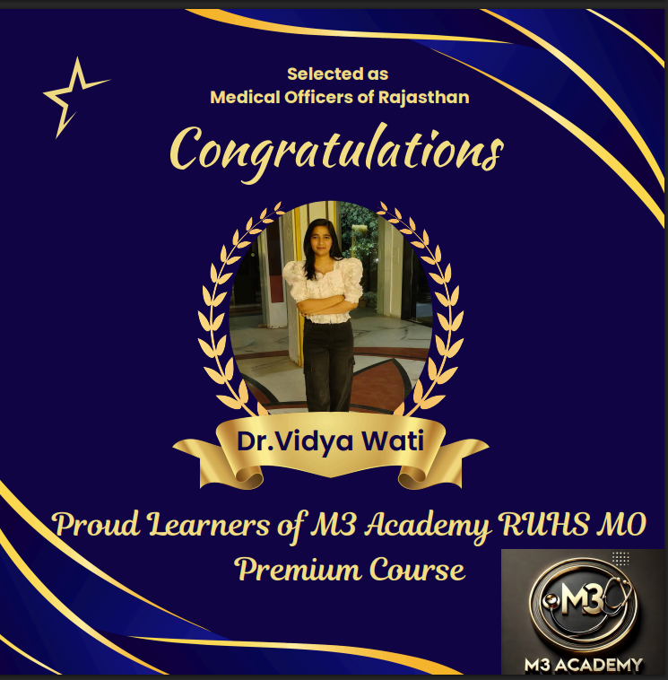 “M3 Academy is the best app for Rajasthan Medical Officer preparation. The Rajasthan MO course is very helpful. The exam-oriented content and clear explanations made learning easy. Notes, mock tests, and daily MCQs took my preparation to the next level. With content available in both Hindi and English, plus regular updates and doubt-clearing support, M3 Academy is the complete package for serious aspirants."