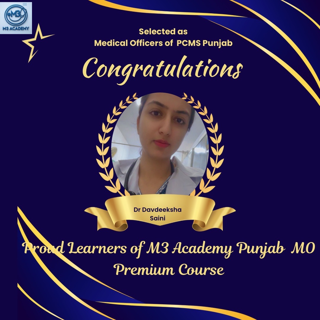 Selected as PCMS Medical Officer –Punjab MO 2025🩺🏆, A proud learner of the M3 Academy Punjab MO Premium Package 💼📚, Now proudly serving the Government of Punjab 🇮🇳👨⚕