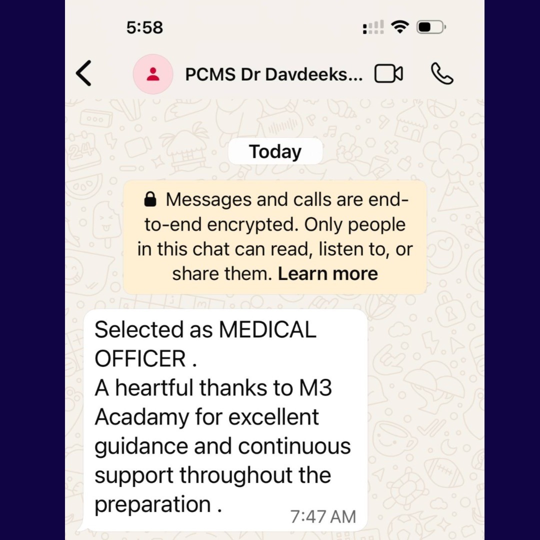 “I was not paying attention to M3 Academy’s daily targets earlier — but now I’ve started following them, and it’s really good! Thanks for this amazing platform. Also, special thanks to sir for taking out time to help us with live classes, even during his hectic residency! 🙏”